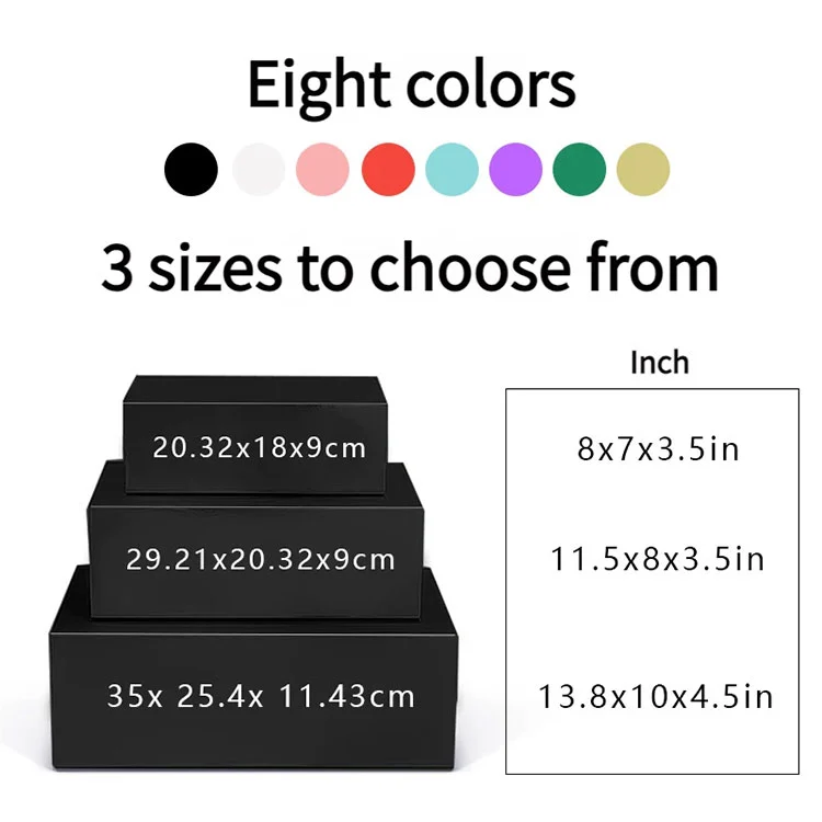 | Ventajas estructurales | Colores sólidos a juego con Pantone Tablero gris rígido de primera calidad Papel especial laminado brillante o mate Inserto de espuma EVA o cartón opcional Acabado de superficie personalizable Estampado en caliente (oro, plata, oro rosa, etc.) Estampado/grabado |